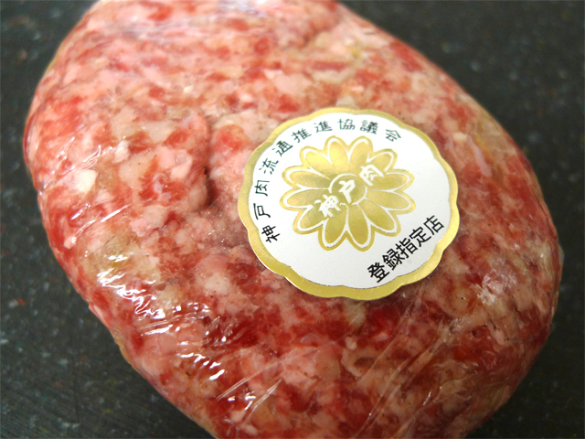 神戸牛のミンチ肉だけなく、「もも肉」・「すき焼き用の肩ロース」・「カルビ」を包丁で丁寧に食感が残る大きさまでたたいたお肉を使用します。